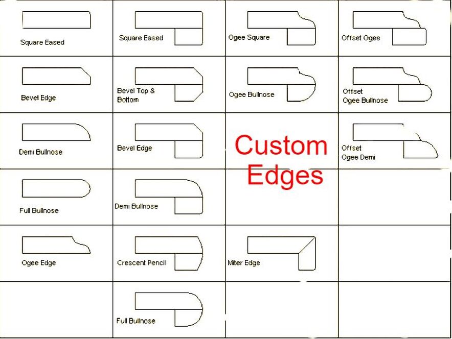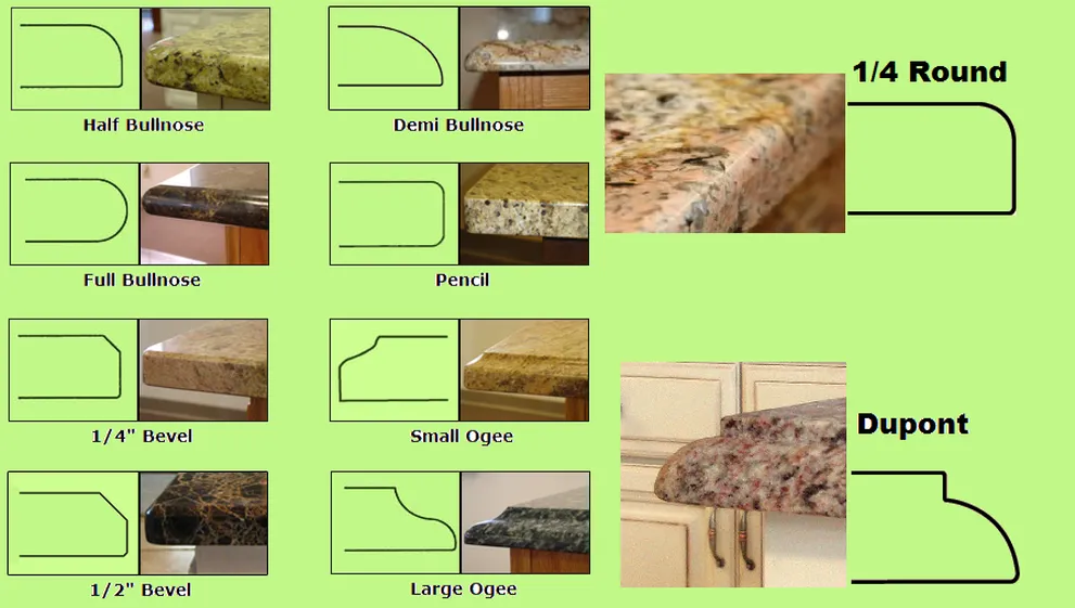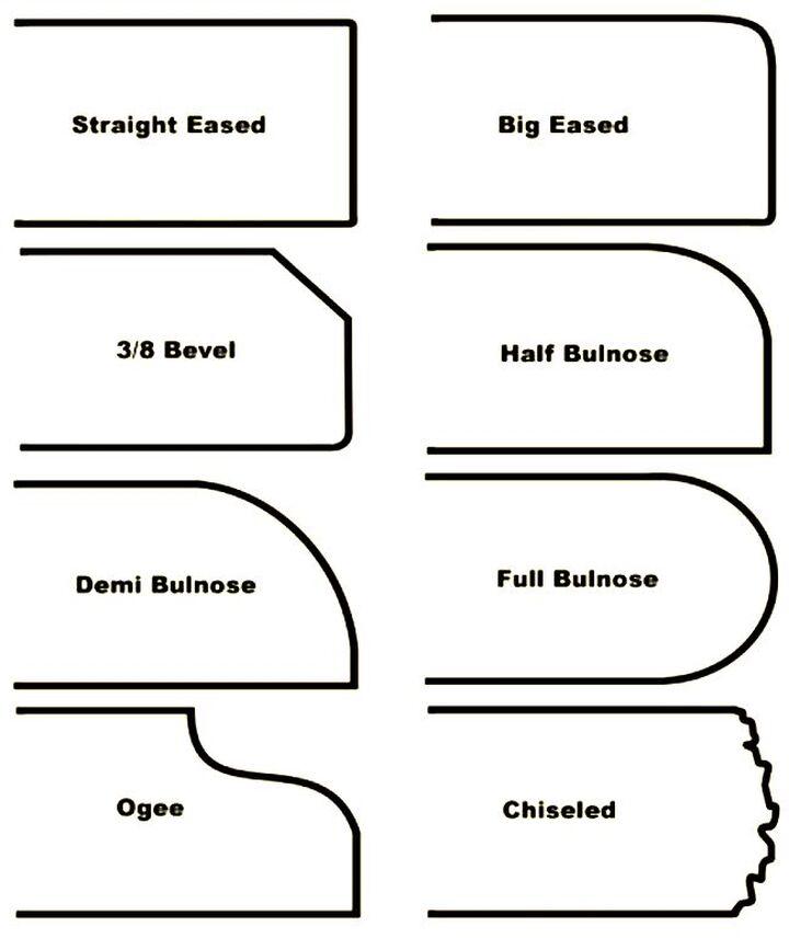 Finish Edges of Countertops are the shaped and polished edges on exposed countertop sides. They enhance appearance, improve safety, and add a decorative touch, with styles ranging from simple straight edges to more detailed profiles