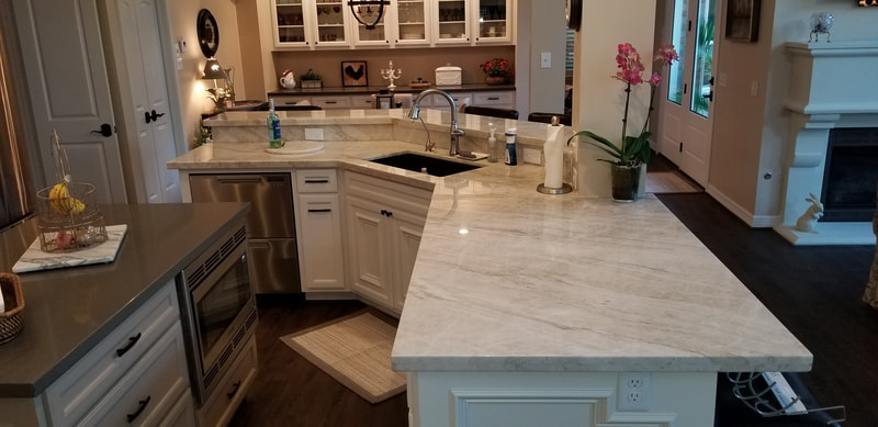 We fabricate and install Granite, Marble, Quartz, and Quartzite slabs in both 2cm and 3cm thickness options.